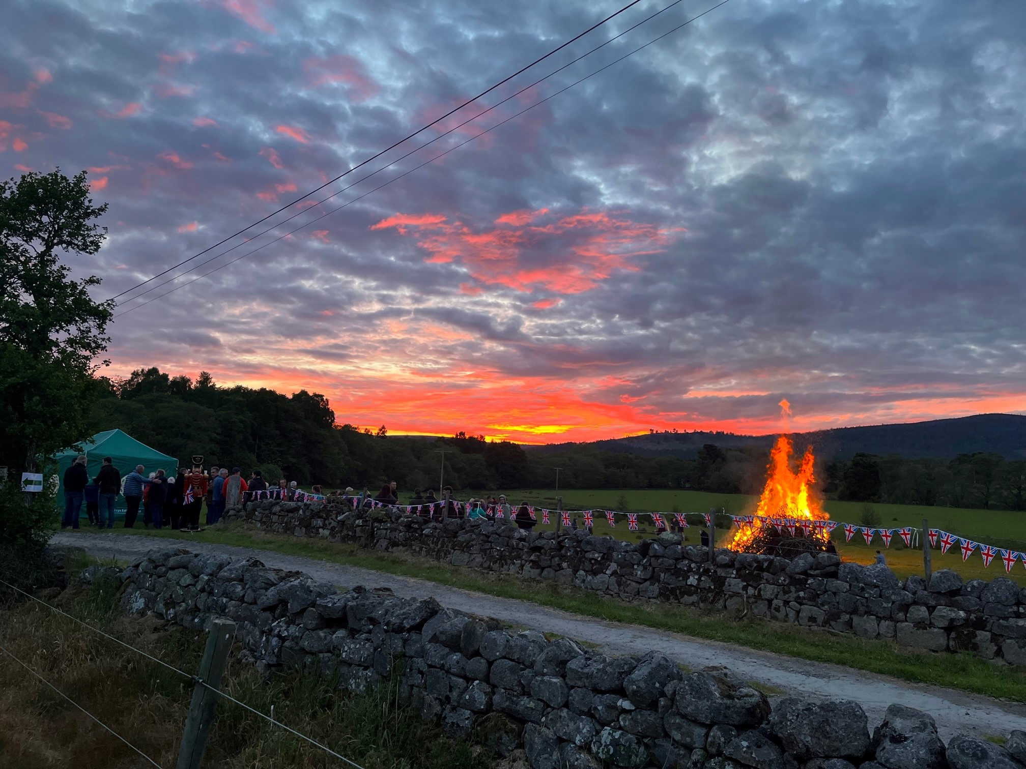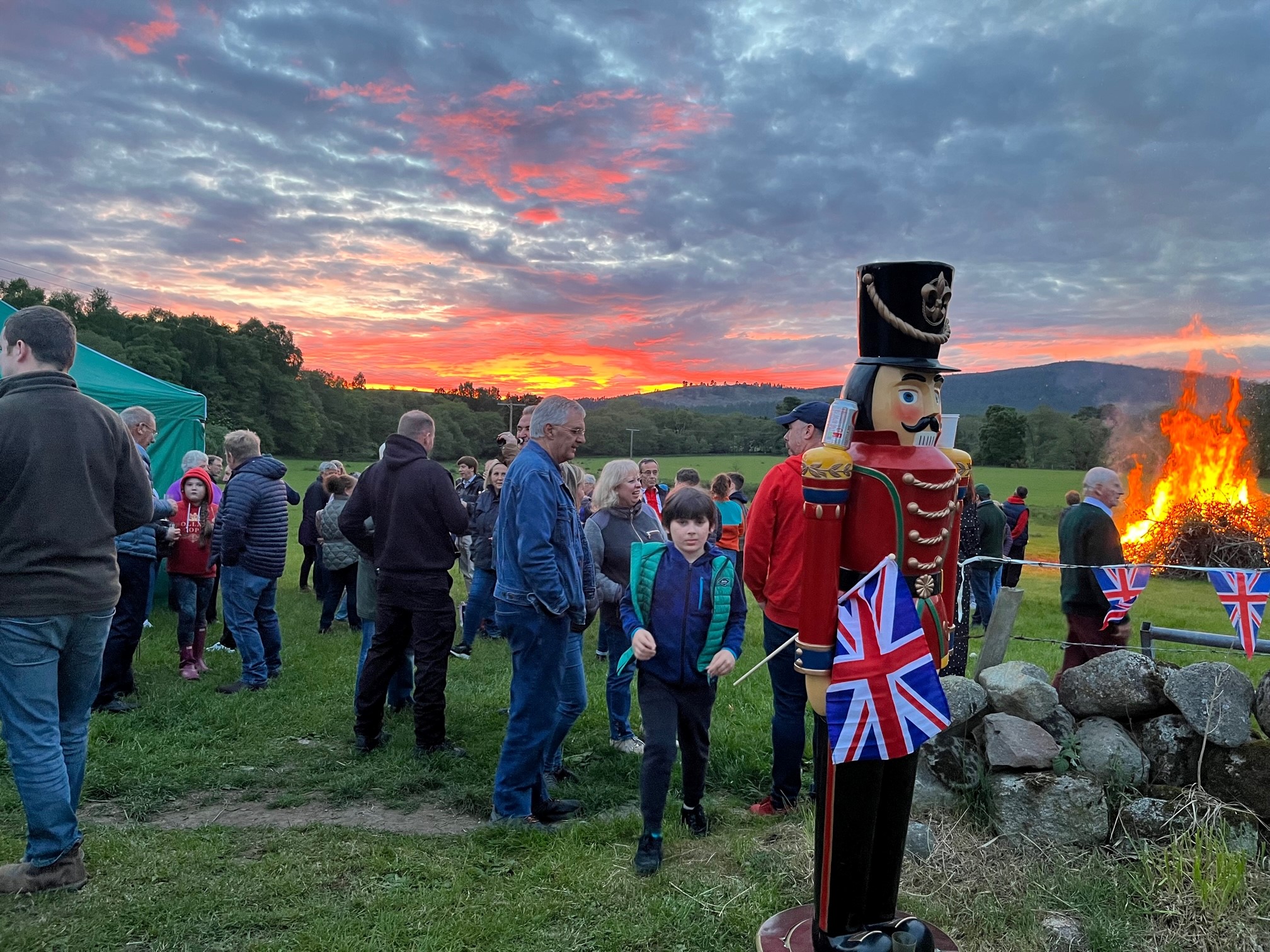 Weather conditions were perfect for the occasion with a stunning sunset setting the scene for the lighting of the Beacon which was also marked with pipes from Banchory & District Pipe Band and a celebratory glass of Prosecco and fireworks.